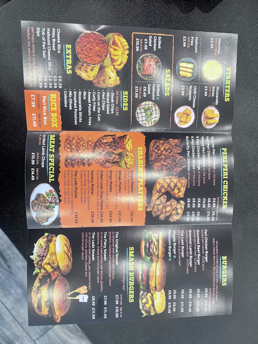 Welcome to The Ladz Huddersfield, a culinary gem in the heart of Huddersfield, located at the Cherry Tree Centre. This vibrant eatery boasts an impressive menu, highlighted by their renowned Peri Peri Chicken, available in various sizes from quarter to whole. For those seeking pre-meal delights, the starters, such as Hummus with Pittas and Halloumi Fries, set the perfect tone.